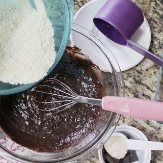 y menos amargo). • 1/3 tz. de aceite de coco Life Choice • ¾ tz. de stevia • 2 huevos • 2/3 tz. de harina de almendras • 1 pizca de sal • 1 cdta. de esencia de vainilla